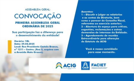Por Redação No dia 29 de abril, às 18h, a ACIG (Associação Comercial e…