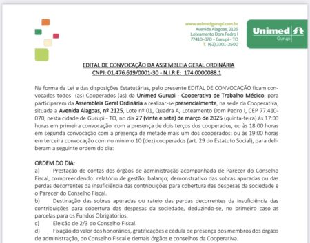 Na forma da Lei e das disposições Estatutárias, pelo presente EDITAL DE CONVOCAÇÃO ficam convocados…