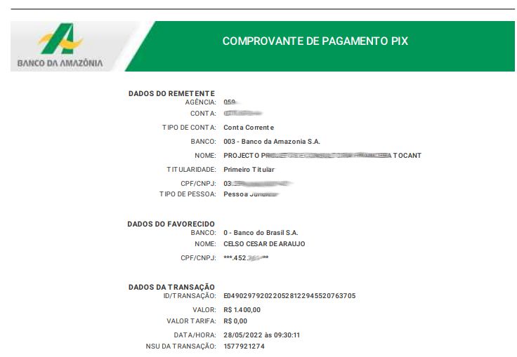 Por sua vez, o presidente do Sindicato Rural de Gurupi, Rafael Marco de Leon, afirmou que a contratação teria sido feita pela entidade e como pagamento ele fez um pix no valor de R$ 1.400,00. “O sindicato comprou 200 litros de óleo diesel. Segue o comprovante que fiz PIX para ele da conta da minha empresa”, disse Rafael Marco.