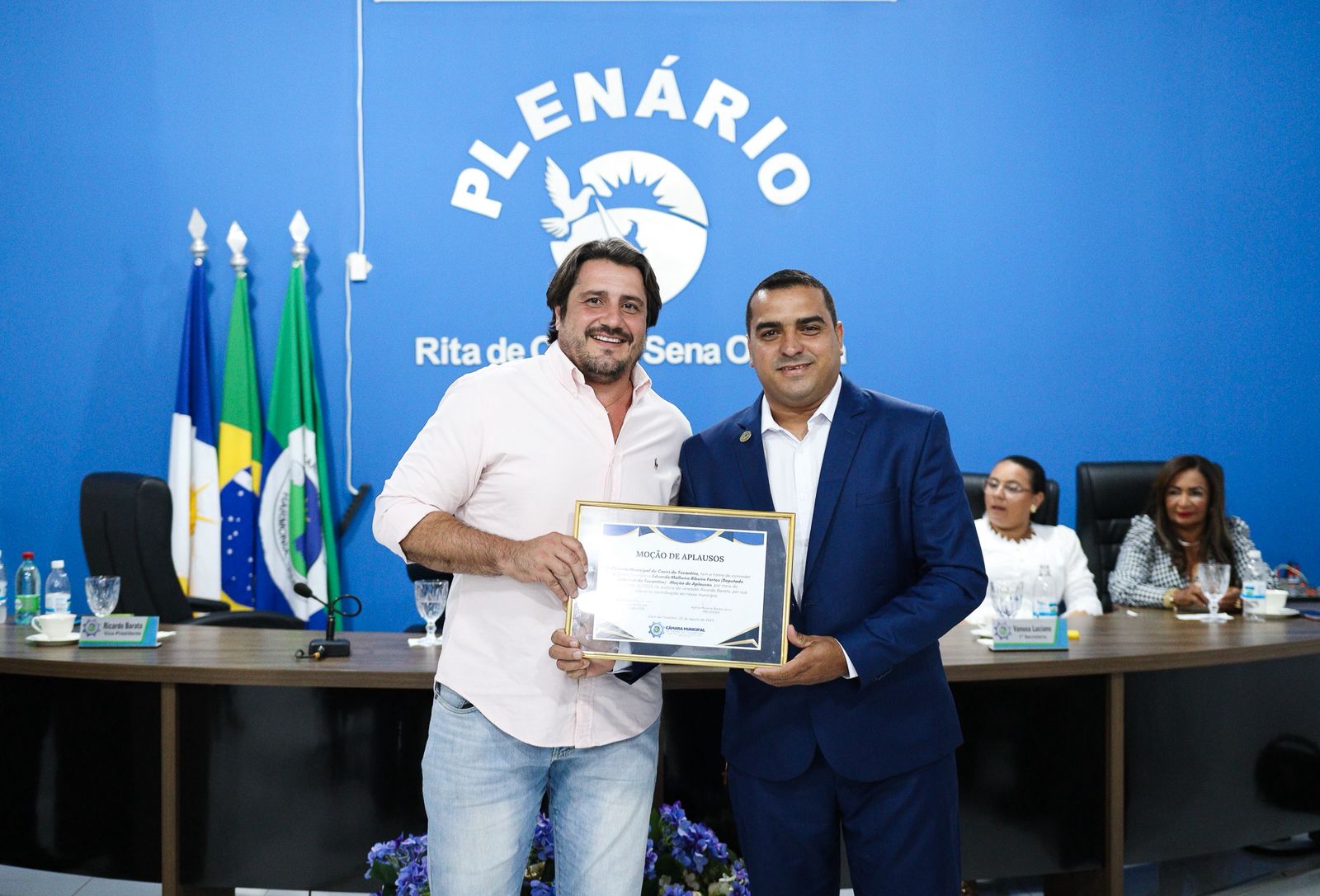 “Agradeço a todos os vereadores e a cada um que foi homenageado. O trabalho em conjunto é essencial para o progresso de nossa cidade”, declarou ao receber a Moção de Aplausos, concedida pelo vereador Kauan Sande.