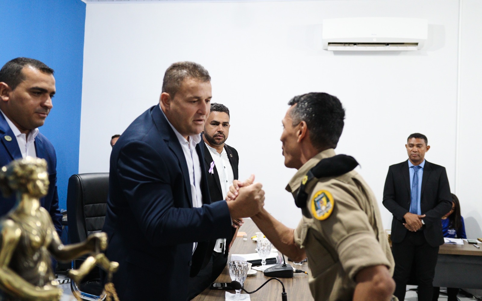 O vereador Kauan Sande entregou ao Prefeito Tetin uma Moção de Aplausos como reconhecimento pelo impacto positivo de sua gestão. “Esta homenagem reforça meu compromisso de trabalhar incansavelmente por nossa cidade e nosso povo”, declarou Tetin, aproveitando a ocasião para também parabenizar os policiais e moradores homenageados.