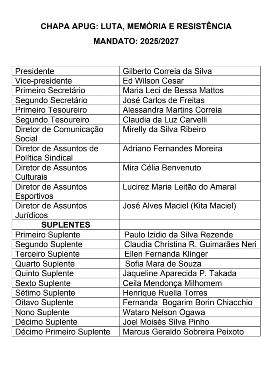 A Apug Ssind – Associação dos Professores Universitários de Gurupi tem nova diretoria eleita para o biênio 2025/2027. A Chapa “Luta, Memória e Resistência”, encabeçada pelos professores Gilberto Correia da Silva – eleito presidente – e Ed Wilson Cesar– eleito vice-presidente –, foi escolhida na noite desta terça-feira, 30 de setembro de 2025.