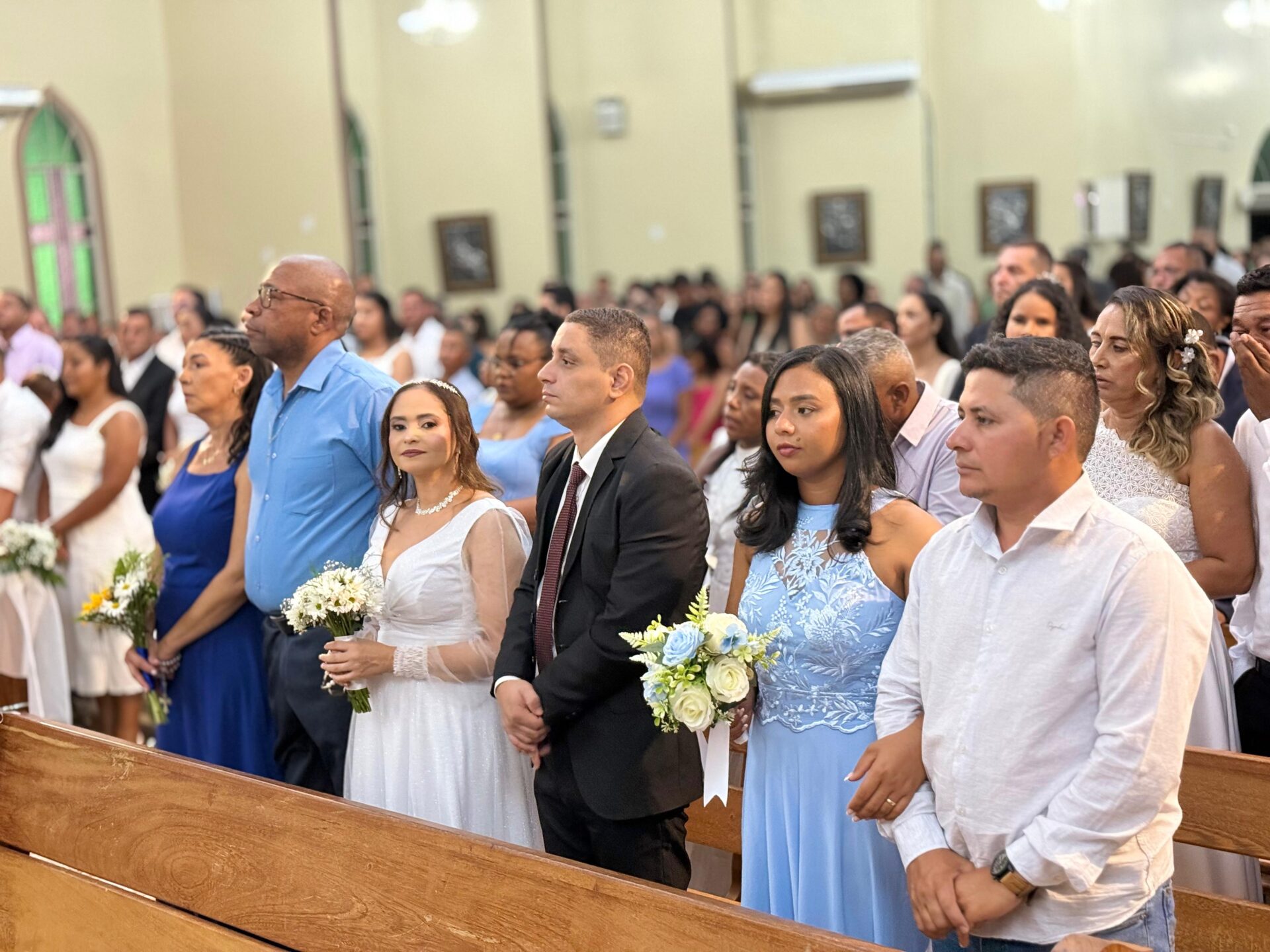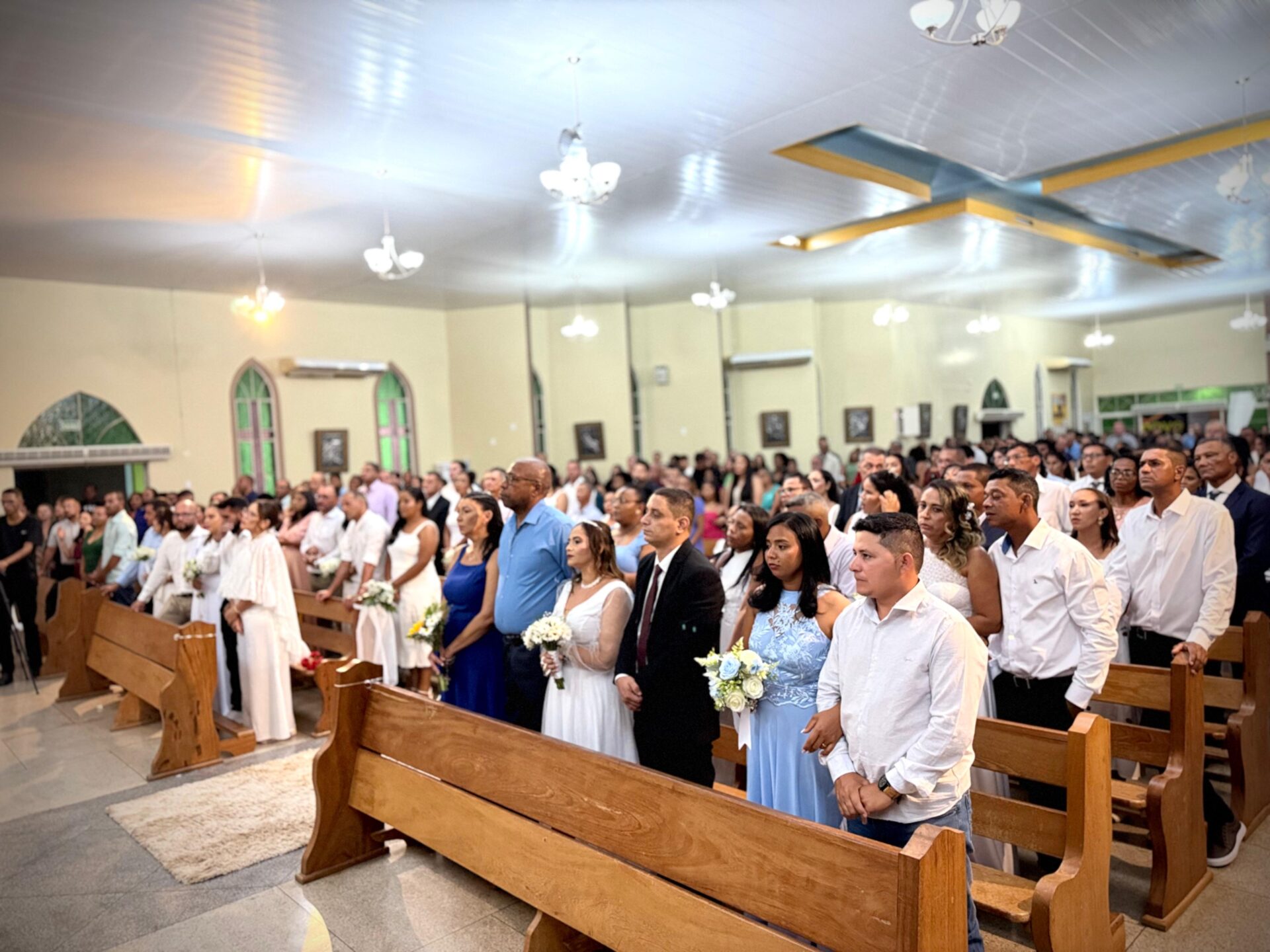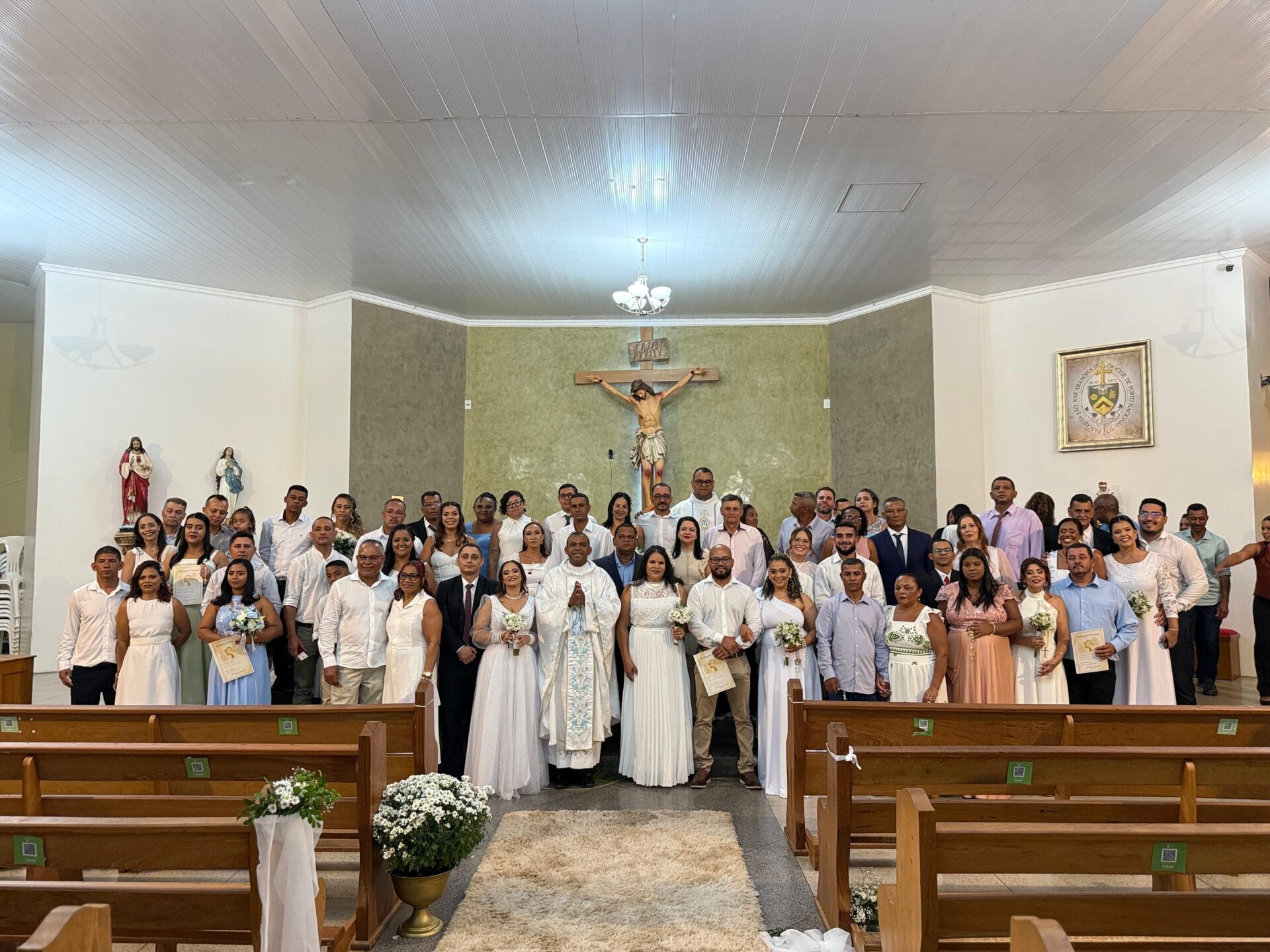 Sobre a Cerimônia do Sacramento do Matrimônio, o Pároco frisou: “Hoje a Igreja está dando oportunidade para casais que tiveram dificuldades de receber essa graça antes”. E finalizou: O matrimônio é sustentado pela oração, diálogo e a renúncia”. 31 casais contraíram o sacramento do matrimônio.