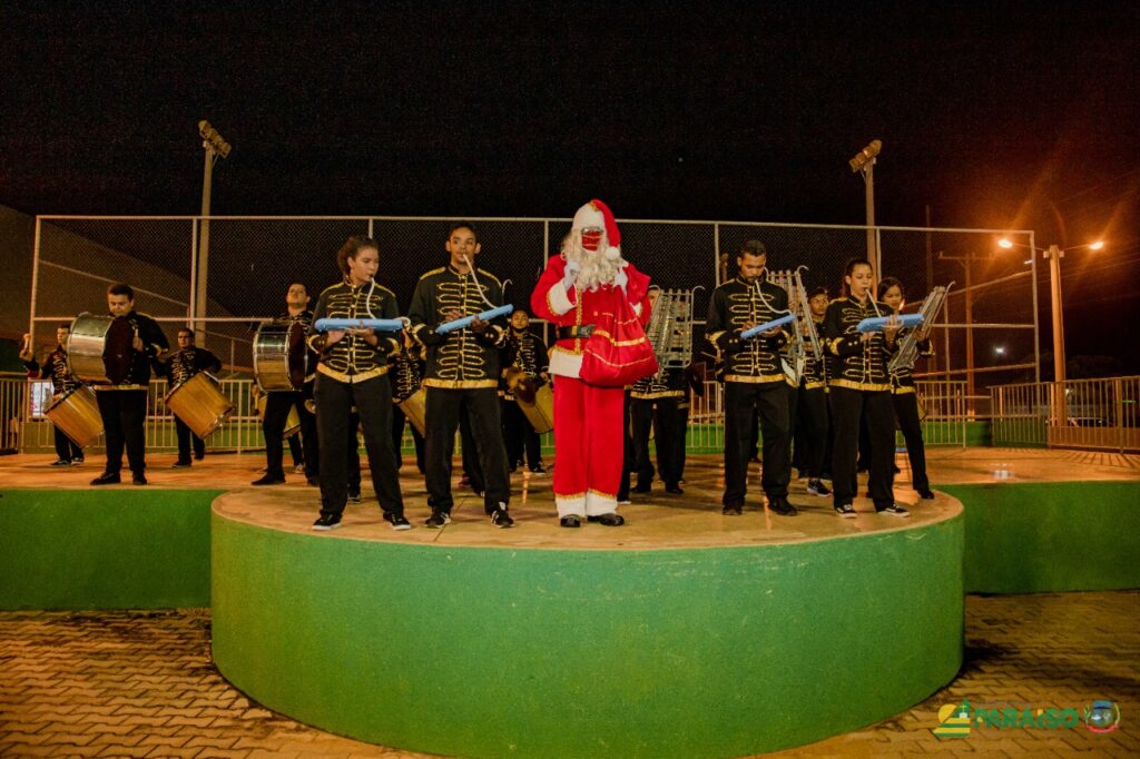 A chegada do Papai Noel em Paraíso, na noite de sexta-feira, 26, levou alegria para crianças e adultos que sentiram-se envolvidos pelos Encantos de Natal – Edição 2021. A programação, coordenada pela Secretaria de Meio Ambiente, Cultura e Turismo começou em frente à Prefeitura, onde baixinhos e grandões se misturaram aos personagens natalinos e percorreram as principais vias da cidade, na Carreta da Alegria, até o Complexo Esportivo Ademir Barbosa Rêgo.