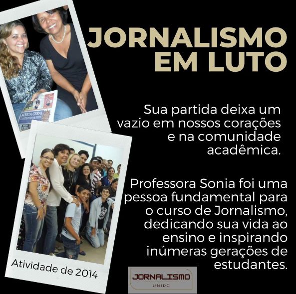 “Sua partida deixa um vazio em nossos corações e na comunidade acadêmica. Sonia foi uma pessoa fundamental para o curso de Jornalismo, dedicando sua vida ao ensino e inspirando inúmeras gerações de estudantes. Sua paixão pelo jornalismo, sua energia contagiante e seu comprometimento com a formação de profissionais exemplares sempre serão lembrados”. Lamentou a UnirG, por meio do curso de Jornalismo.