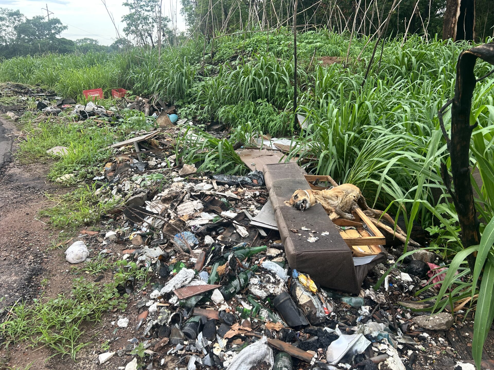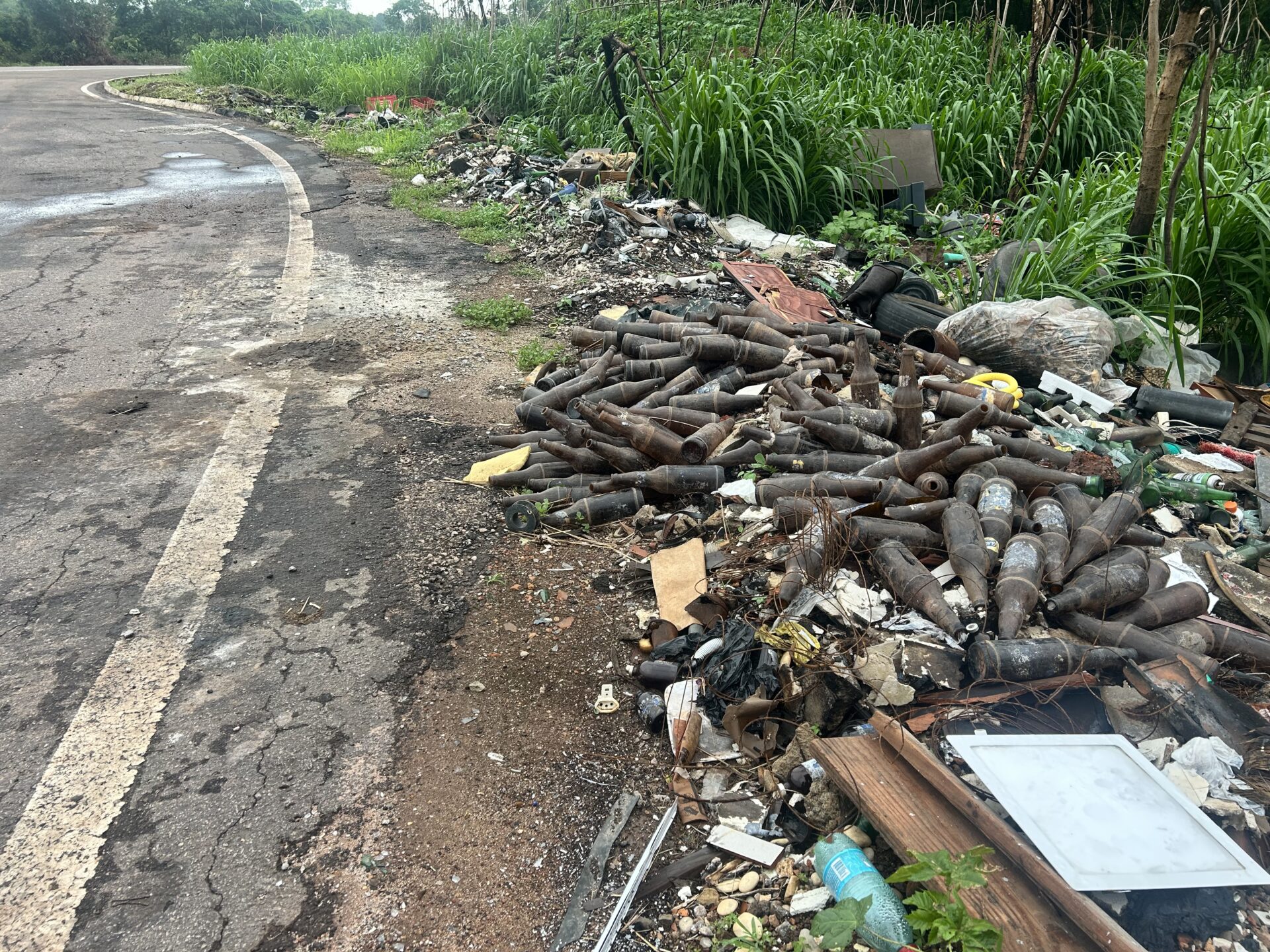 Grande quantidade de garrafas descartadas na margem da BR-242 em Gurupi mostra por que precisamos conversar sobre logística reversa do vidro no Tocantins