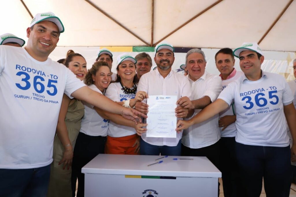 O governador Wanderlei Barbosa, esteve nesta terça-feira, 03, no Povoado Trevo da Praia, dando início a assinatura da Ordem de Serviço para a retomada das obras de pavimentação da rodovia TO-365, compreendendo o trecho do entroncamento da BR-153 ao povoado.