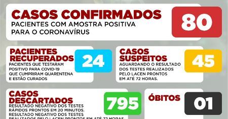 Gurupi contabiliza até o momento 795 casos descartados, 80 confirmados, 45 suspeitos e 24 pessoas curadas de Covid-19.