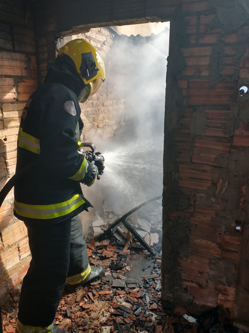 As chamas consumiram cômodos da casa e o fogo foi controlado pelo morador e vizinhos, até a chegada do Corpo de Bombeiros.