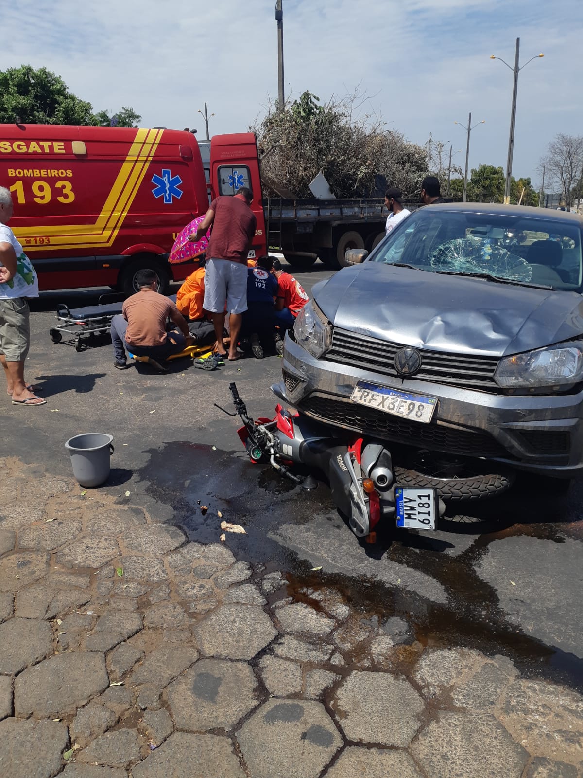 Segundo o Corpo de Bombeiros o motociclista teve fratura em um dos braços. “No local informado encontramos a vitima consciente e verbalizando, ainda estava com o capacete, e durante as avaliações nos informou que sentia dores no membro superior direito, onde verificamos que havia uma fratura fechada. Durante o nosso atendimento a equipe do Samu chegou ao local e conduziu a vítima ao hospital. A condutora do veículo permaneceu no local e não necessitou de atendimento”, destacou os militares.