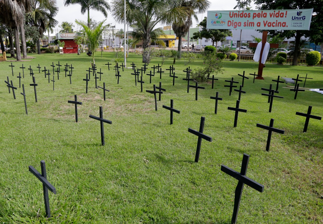 Sensibilizar por meio da arte. Levar informação através da cultura. Estes foram os principais objetivos de uma intervenção artística realizada na manhã desta quinta-feira, 25/03, no Parque Mutuca, em Gurupi. Cruzes pretas foram instaladas no local, lembrando os mais de 100 gurupienses que perderam a vida em decorrência da Covid.