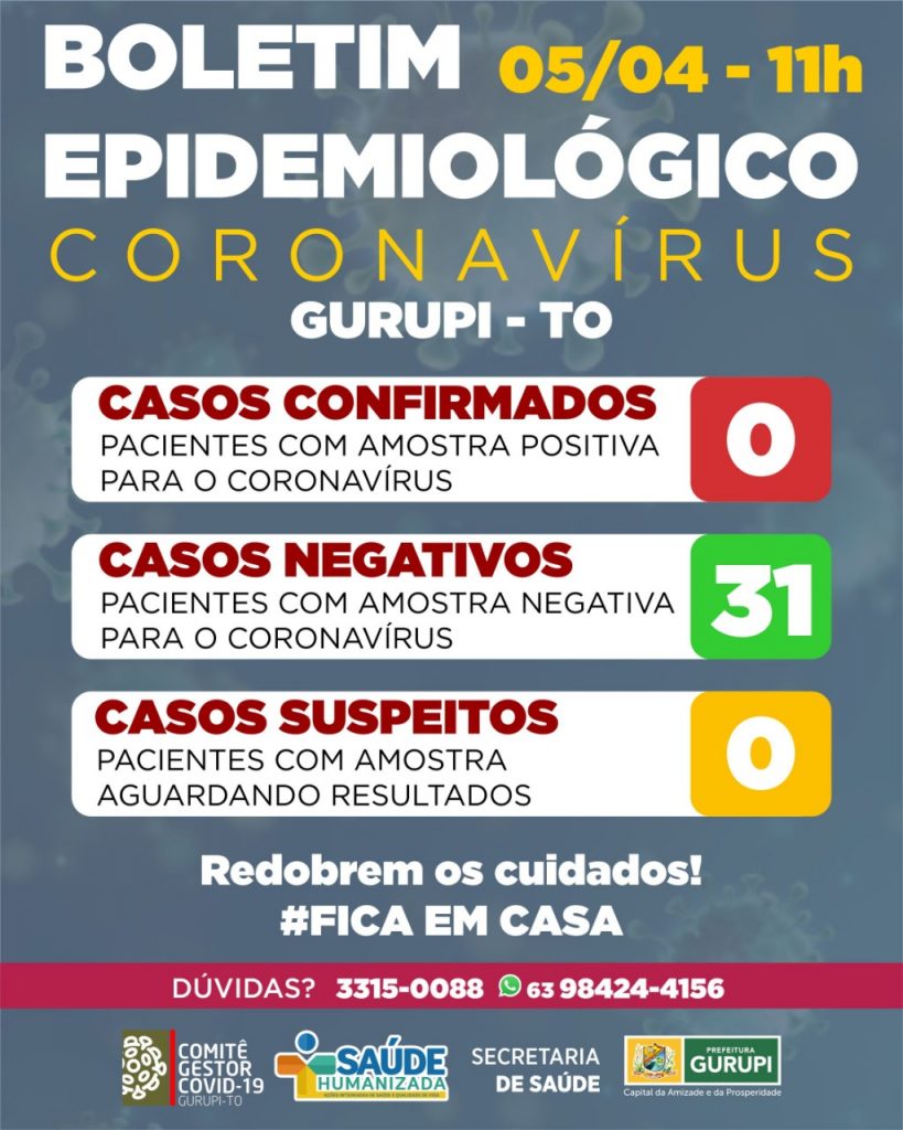 Lar»Notícias»Destaques»Neste domingo: Gurupi continua sem casos confirmados e todos os suspeitos foram descartados