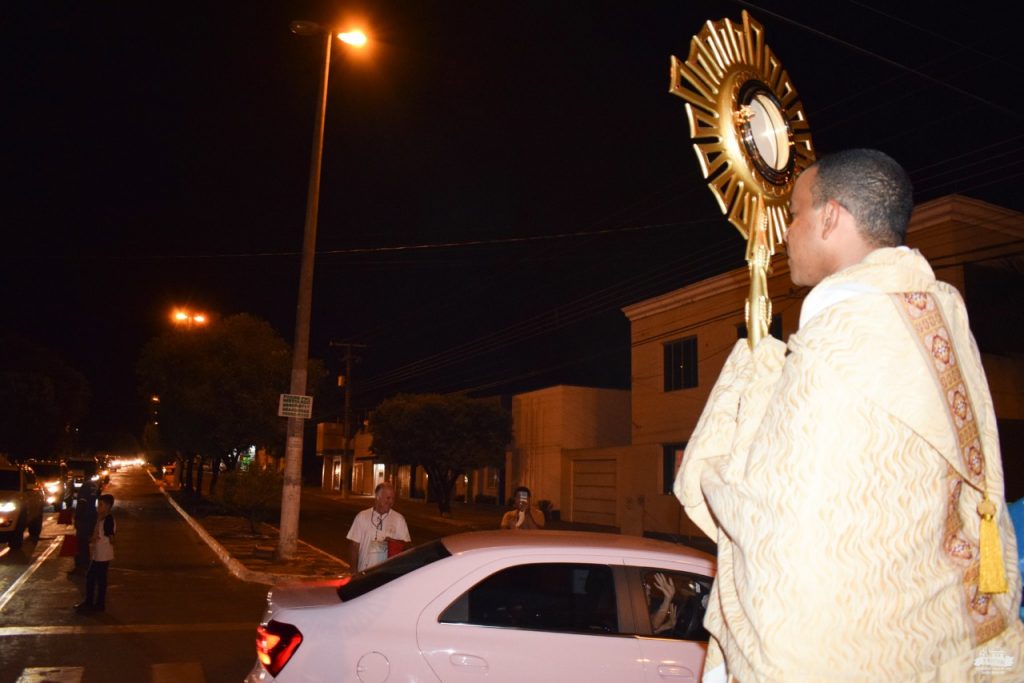 Após a Santa Missa o padre Eldinei Carneiro andou em carreata com os fiéis e percorreu o centro da cidade nas Avenidas Goiás e Maranhão, abençoando com o Santíssimo no ostensório toda a cidade.