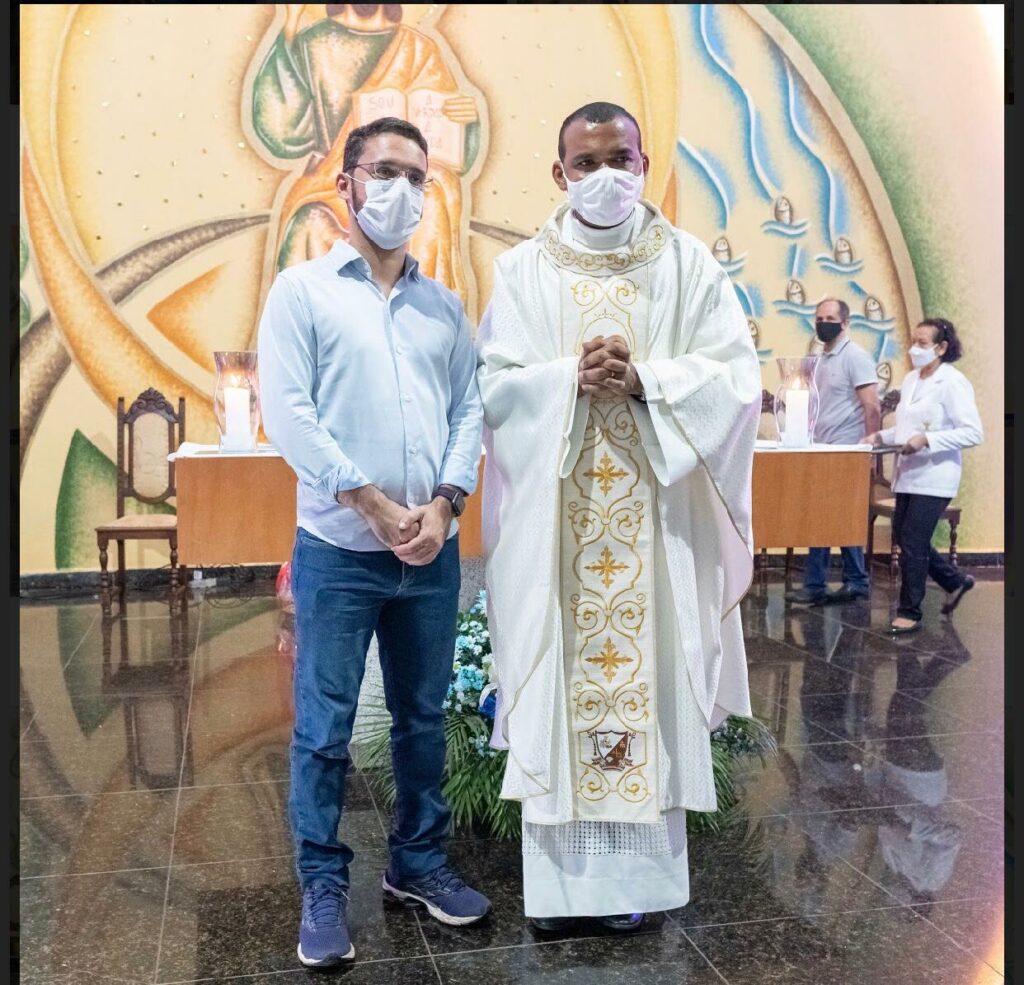 Além do Pároco Pe. Eldinei Carneiro, celebraram ainda a missa o Pe. Osmam Castro (Vigário Paroquial D’Abadia) e Pe. Vilmário Lustrosa (Vigário Paroquial da Santo Antônio).