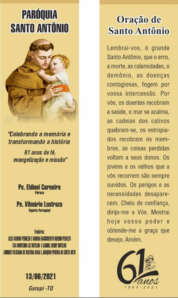 A programação do festejo de Santo Antônio, padroeiro de Gurupi, foi finalizada neste último final de semana com uma programação especial. Durante dias a Paróquia realizou várias atividades como missas, novenas, quermesses com barraquinhas, sorteio e fechou o festejo com uma carreata pela cidade, levando o amor de Deus aos gurupienses com a benção dos veículos na praça.