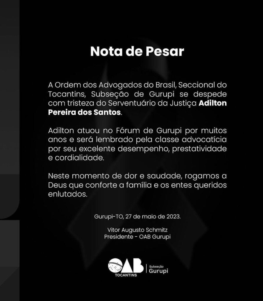 Em nota a OAB lamentou a morte do ex-serventuário da Justiça.