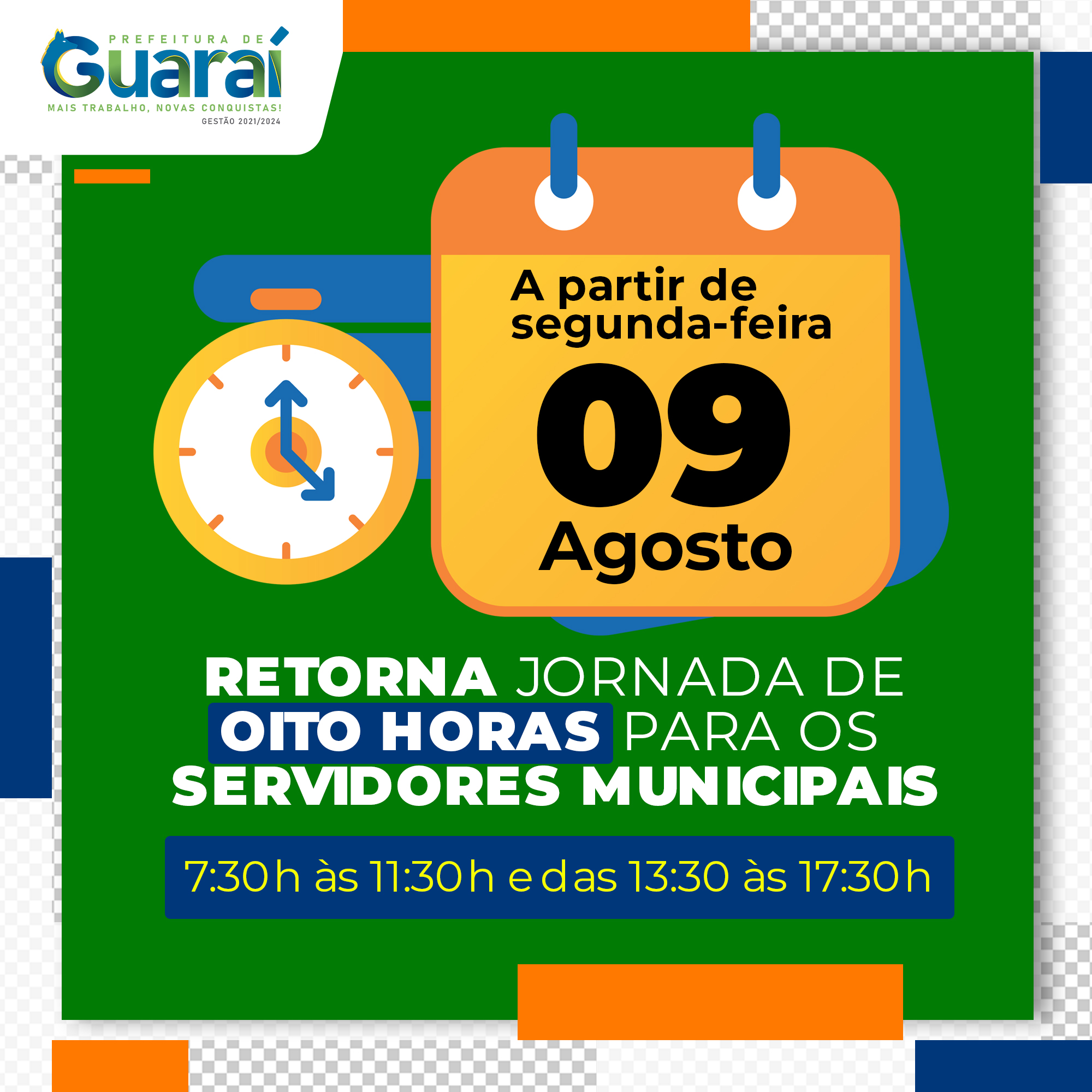 A medida foi regulamentada pelo Decreto nº 1.623/2021, publicado na última semana, que estabelece os seguintes horários: das 7:30h às 11:30h e das 13:30 às 17:30h, com expediente regular de segunda a quinta-feira. Apenas nas sextas-feiras permanece mantido o horário diferenciado de trabalho, das 7:30h às 13:30h.