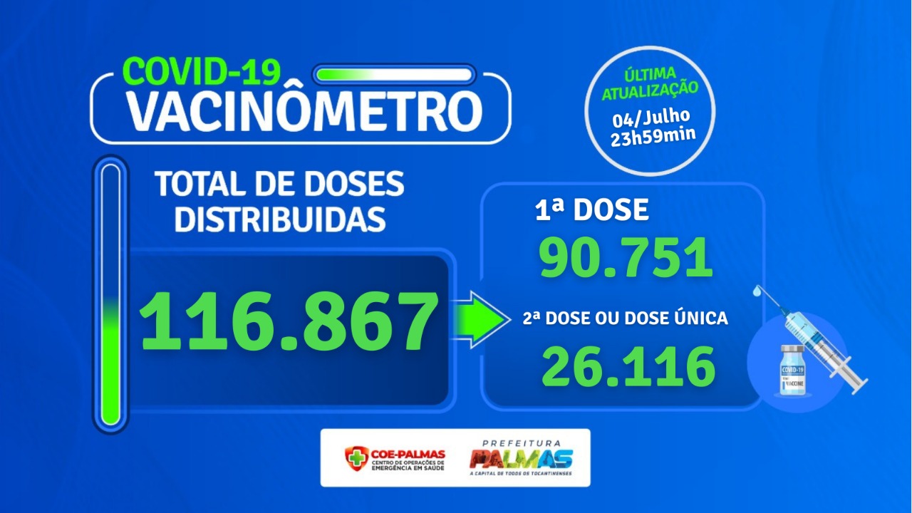 Até sábado, 11, a Capital havia aplicado 127.216 doses das vacinas contra a Covid-19, sendo 97.861 primeira dose e 29.355 segunda dose, ou dose única. Para acompanhar a evolução da imunização contra a Covid-19 em Palmas ou agendar vacinação, acesse o site Vacina Já.