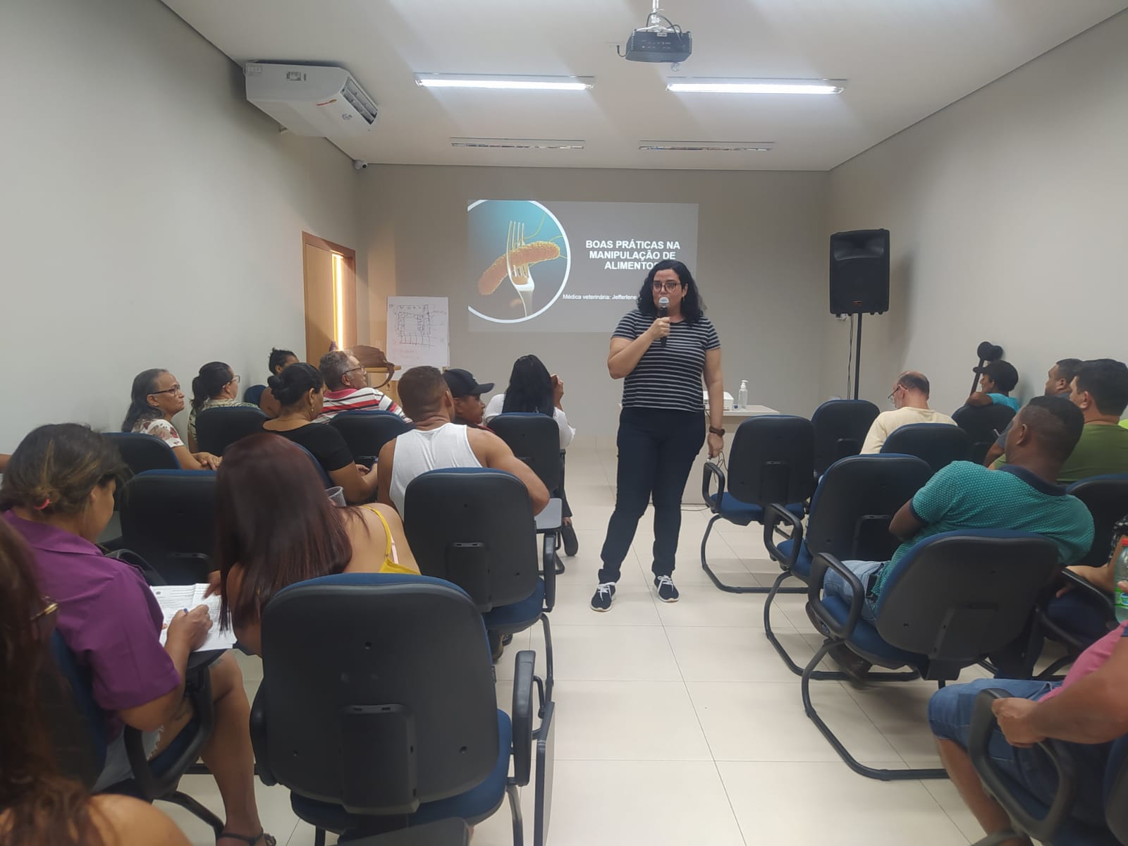 Após a apresentação do circuito da folia, foi ministrada uma palestra com o tema “Boas Práticas na Manipulação de Alimentos”, pela instrutora do Sebrae Jefferlene Almeida.