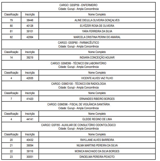 Conforme o Diário Oficial (leia aqui) estão sendo convocados quatro enfermeiros, uma farmacêutica, um técnico em laboratório, técnico em radiologia, fiscal de Vigilância Sanitária e quatro auxiliares de consultórios odontológicos.