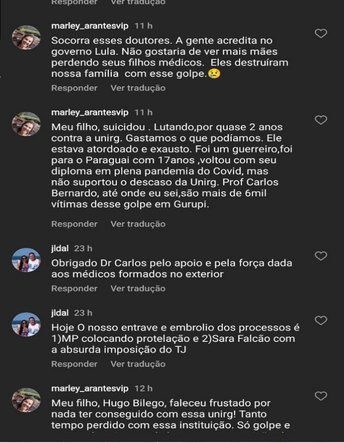 Através desta venho saudar a todos os moradores de Gurupi, e a todos que de alguma maneira fazem parte da UNIRG, nos UBmed somos MÉDICOS formados em universidades de excelência, por isso somos integrados ao ARCOSUL. Não viemos hoje falar de nossos direitos, pois é sabido por todos que somos amparados por lei, hoje queremos falar com você morador de Gurupi. Toda história tem os dois lados, talvez você tenha sido apresentado apenas para um lado, por isso venho aqui falar em nome de todos os médicos que direta ou indiretamente vão se fazer presente amanhã na sua cidade. Tudo começou a quase um ano atrás, quando a UNIRG emitiu uma nota técnica, e o nosso tão sonhado apostilamento estava cada vez mais perto, na minha casa já comemorávamos e fazíamos planos de findar o ano de 2022 no plantão nosso de cada dia, ajudando a salvar vidas. Alguns contratempos aconteceram nesse meio tempo, e o tão sonhado apostilamento foi se distanciando. Com isso vieram as frustrações, a tristeza e até mesmo o desespero. Desse cenário nasceu uma união, uma linda união, onde nós MÉDICOS nos unimos em prol de um RESPEITO, em prol de um apostilamento, não pense que foi fácil, escutar de pessoas preconceituosas que não temos capacidade, ou que queremos o mais fácil ou até mesmo que queremos forçar algo, eu mesmo já chorei por diversas vezes, trancada no meu quarto. Quando as contas chegam o desespero bate, pois eu sei da minha capacidade, tenho força para trabalhar, estudei para isso, e o pior, o Brasil tem carência de médicos, no Tocantins faltam médicos, e por puro preconceito sou impedido de trabalhar. Quando esse desespero batia, tínhamos uns aos outros para nos fortalecer e Deus usava por muitas vezes um de nós para falar e nos apoiar, infelizmente no meio do caminho alguns não aguentaram a pressão e tiraram sua própria vida, neste momento eu até utilizo deste espaço para fazer uma homenagem aos meus colegas que não resistiram e se foram, sei que onde estiverem essa luta é por vocês também.