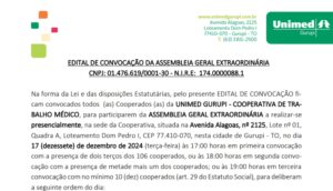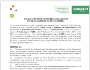 Na forma da Lei e das disposições Estatutárias, pelo presente EDITAL DE CONVOCAÇÃO ficam convocados todos (as) Cooperados (as) da…