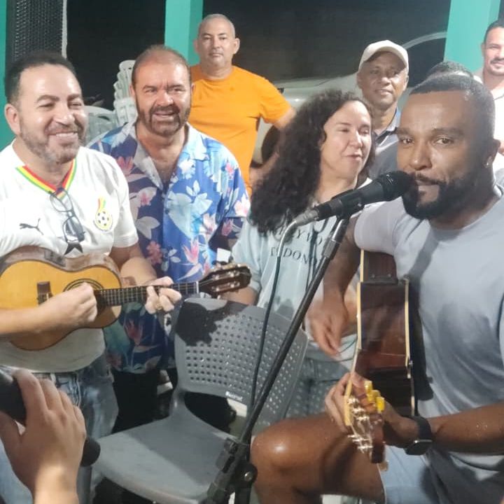 “O Tales me convidou e eu levei os instrumentos. Nós fizemos a resenha lá na hora”, contou Ed Wilson, referindo-se à apresentação improvisada que animou os convidados.