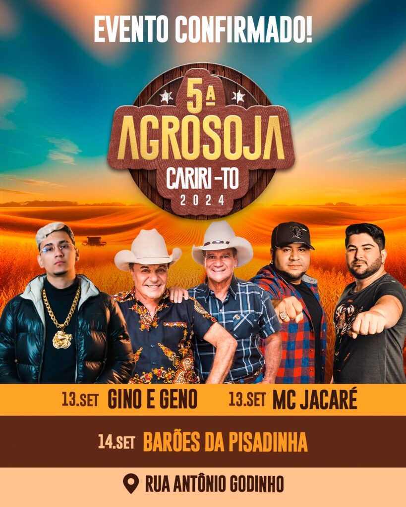 A Prefeitura Municipal de Cariri confirma a realização da 5ª edição da Agrosoja, evento tradicional que celebra o agronegócio e a cultura local. Em virtude do período eleitoral e das recomendações dos órgãos de controle, a edição deste ano acontecerá com adaptações para atender às restrições, garantindo uma festa responsável e segura para todos.