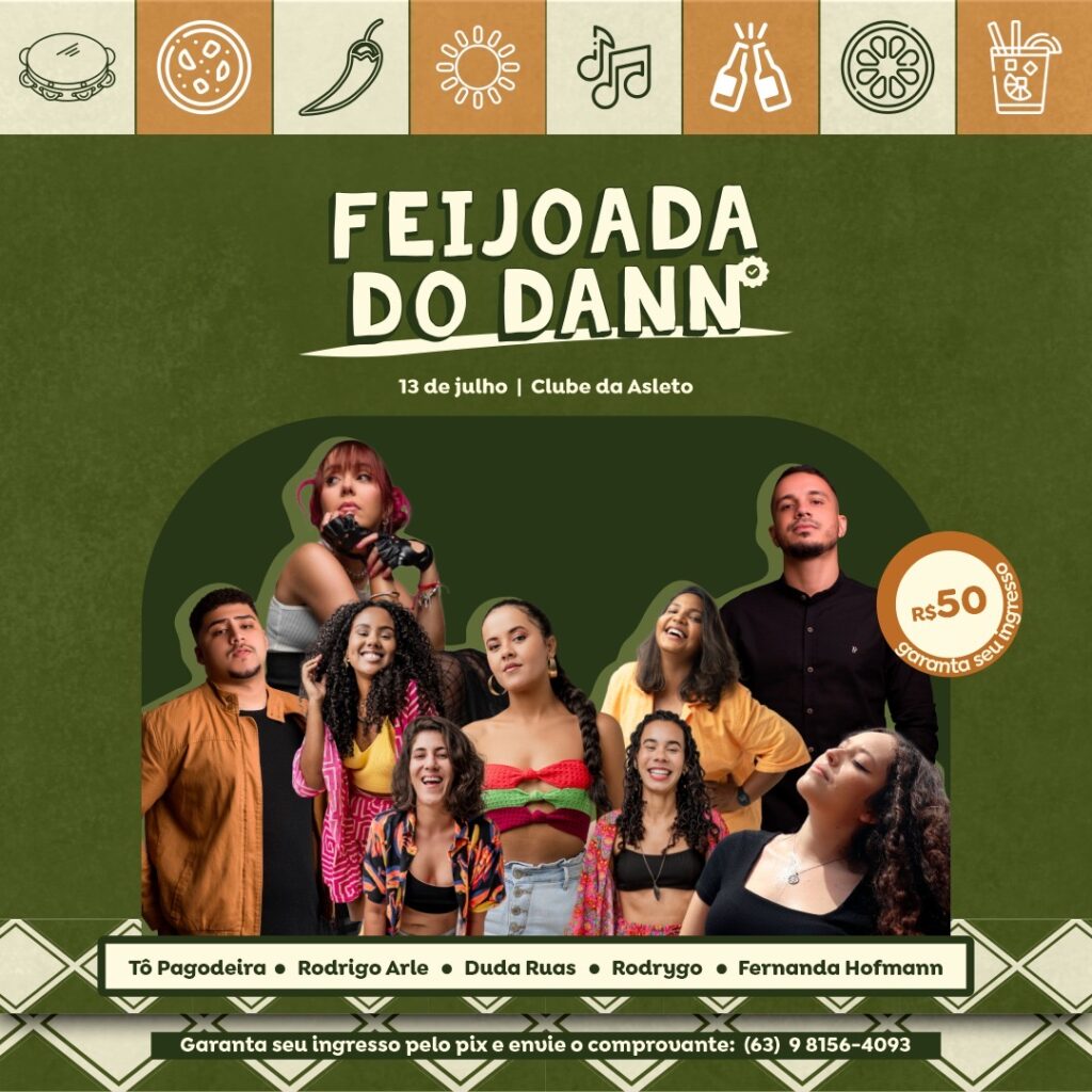 No próximo sábado, 13, será realizada, em Palmas, a primeira edição da Feijoada do Dann. O evento, promovido pelo influenciador e jornalista Daniel Lélis, contará com várias atrações musicais e deve reunir dezenas de pessoas no Clube da Associação dos Servidores da Assembleia Legislativa do Tocantins (Asleto), na região sul da capital.