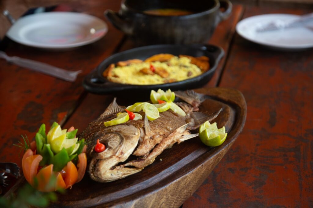 Depois dos passeios, a parada obrigatória é o restaurante do complexo, onde você vai encontrar um cardápio com refeições completas. Não vão faltar pratos como peixes fritos e ao molho, costelinha suína, carne de sol, moqueca de banana e a deliciosa panelinha, além de sobremesas.