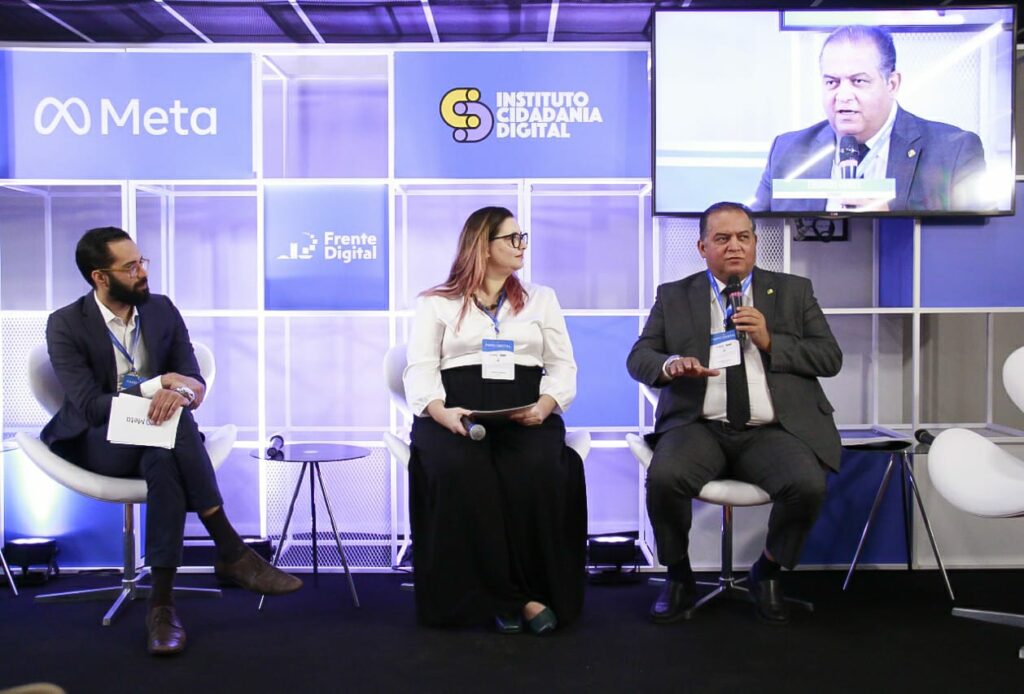 Presentes a representante da Meta, Kaliana Kalache, Diogo Rais do Instituto Cidadania Digital, Claudia Grande do Projeto 60 Anos e o senador e líder do governo no Congresso, Eduardo Gomes, com mediação da jornalista Lilian Witte Fibe.