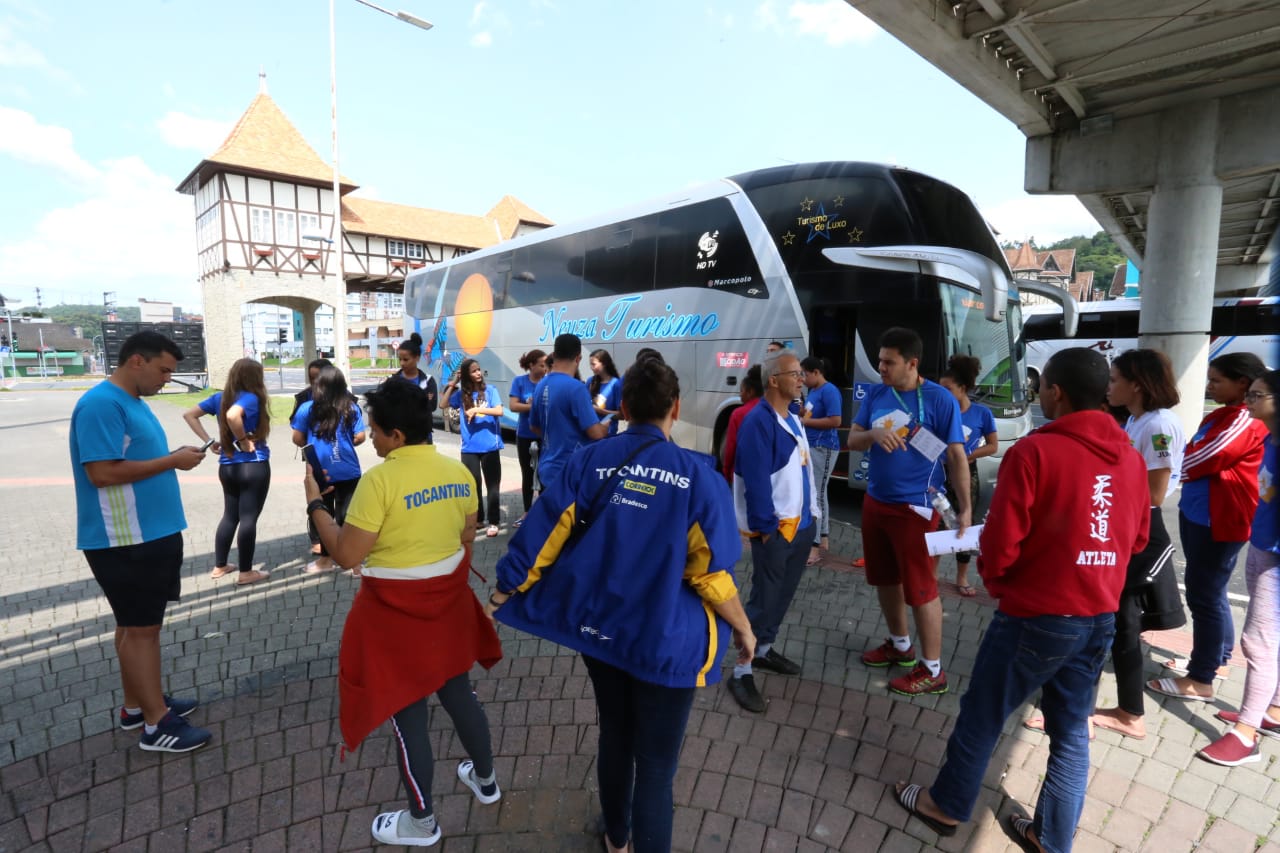 Depois de mais de 2.300 km de viagem, a delegação do Tocantins chegou a Blumenau – SC, onde disputará o primeiro bloco de competições da etapa nacional dos Jogos Escolares da Juventude. Ao todo, o Tocantins conta com 98 representantes na maior competição interescolar do Brasil, entre atletas, professores e comissão técnica.