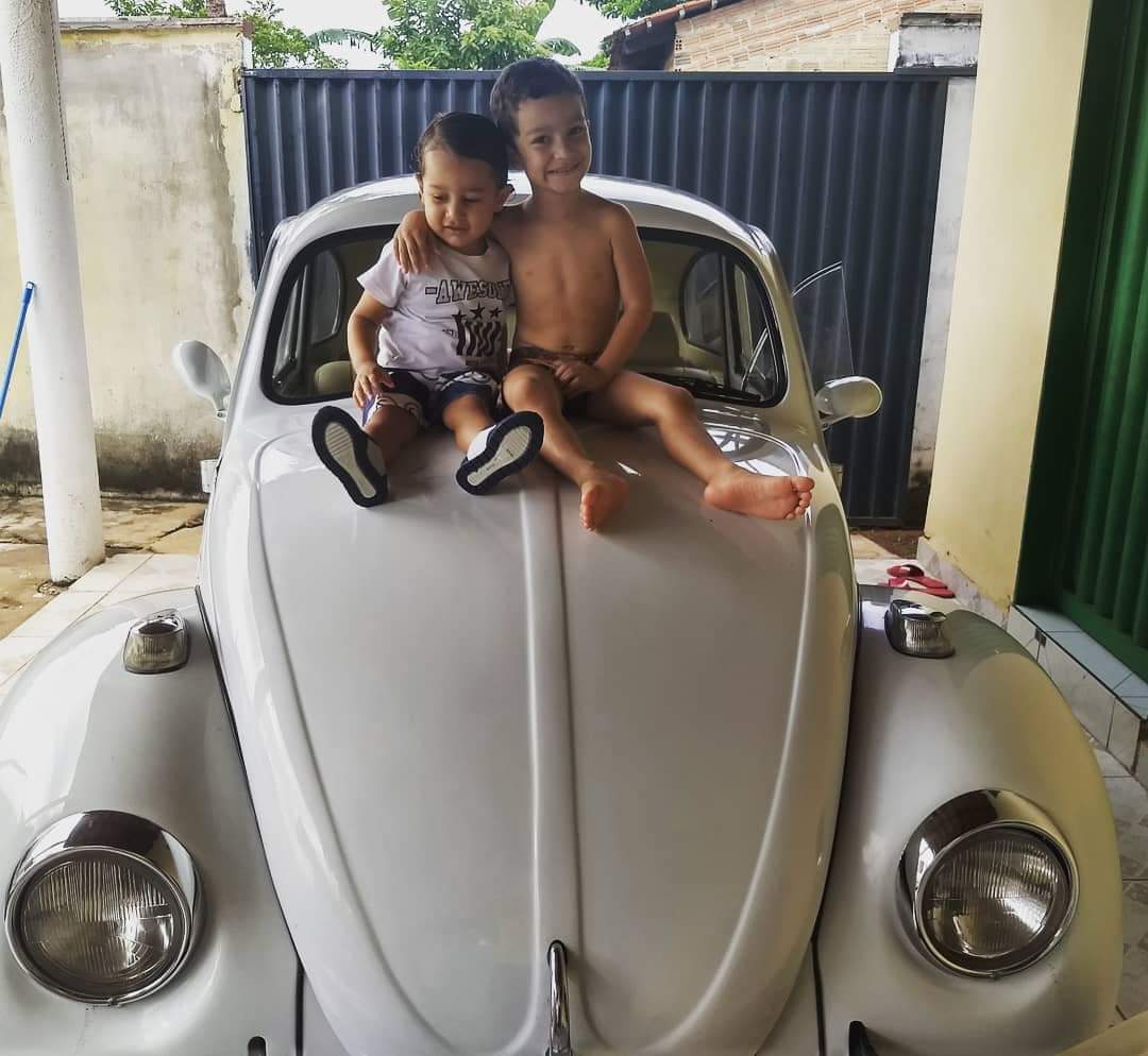 Arimar, na foto ao lado do seu irmão Alesssio Linhares,, participa de várias competições como seu fusquinha (Foto Arquivo Pessoal)