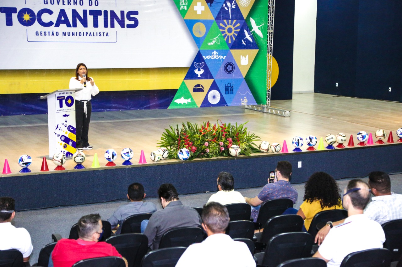 A titular da Seduc, Adriana Aguiar, durante solenidade de lançamento do Curso de Formação de Árbitros de Futebol
