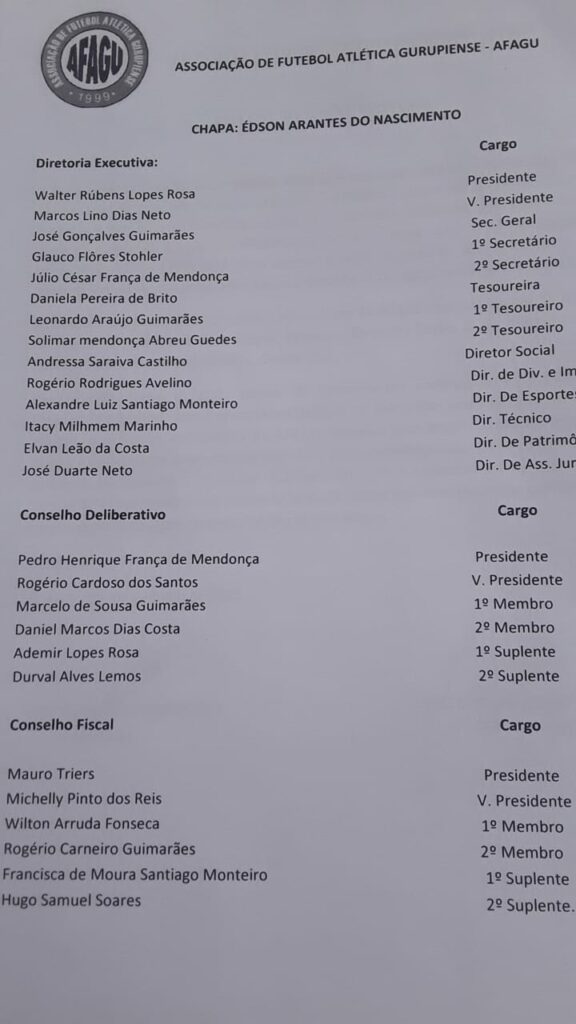 Segundo o Diretor de Patrimônio da Associação de Futebol Atletica Gurupiense – AFAGU, Elvan Leão, com a eleição da nova diretoria reinicia também as atividades esportivas com o desafio de aumentar o projeto esportivo, bem como, a criação de um projeto social envolvendo os familiares dos atletas.