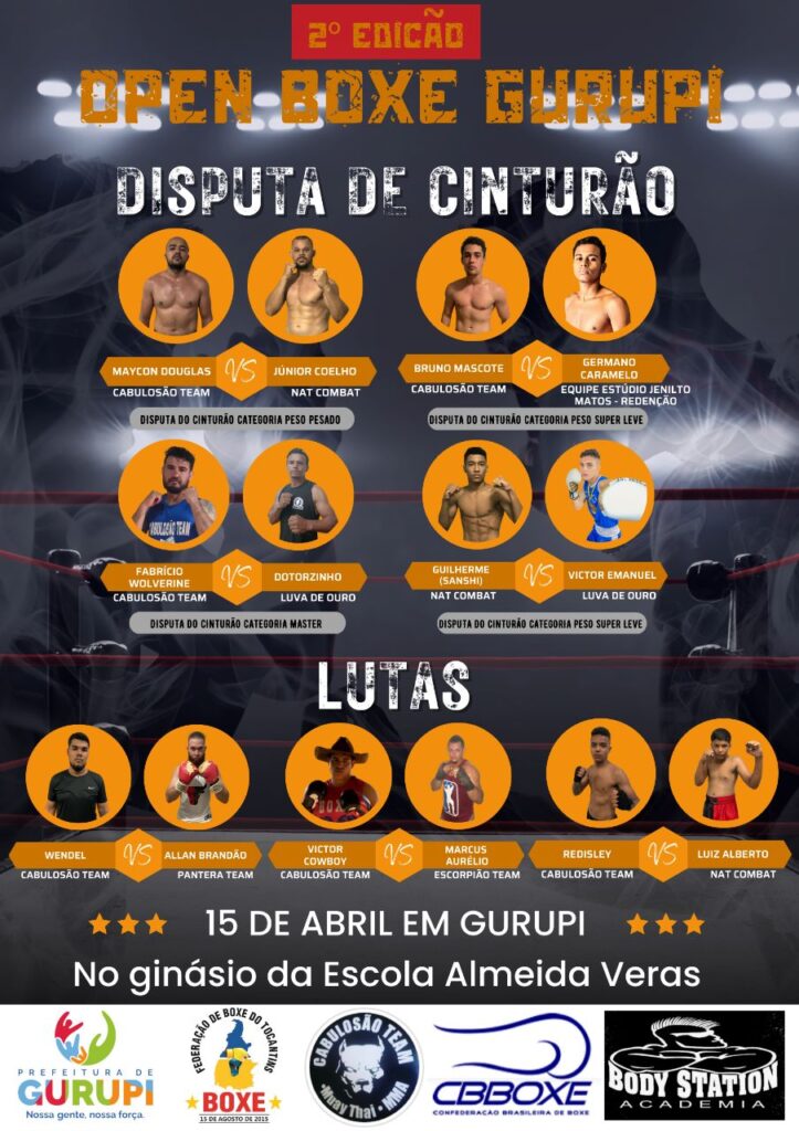 Acontece neste sábado, 15, a partir da 07h no Ginásio Esportivo da Escola Almeida Veras em Gurupi, o 2ª OPEN BOXE GURUPI, realizado pela Federação de Boxe do Tocantins, juntamente com a Secretaria Municipal de Juventude e Esporte.