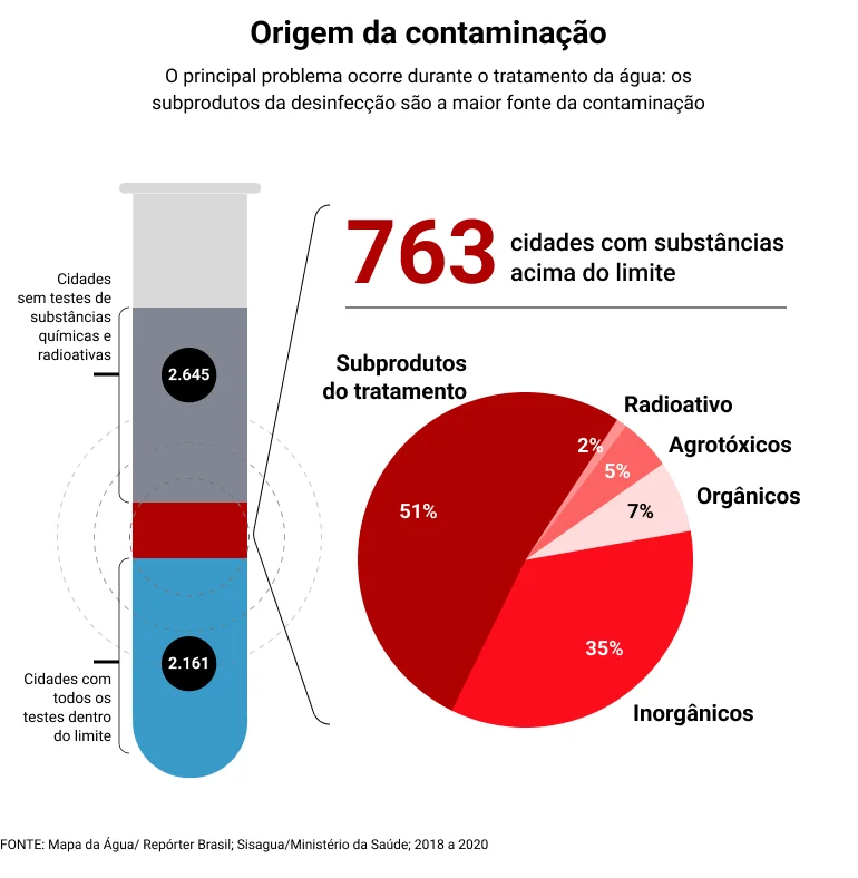 As informações podem ser consultadas por cidade no Mapa da Água, que destaca quais substâncias extrapolaram o limite e explica seus riscos. Os dados são resultados de testes feitos por empresas ou órgãos de abastecimento e enviados ao Sisagua (Sistema de Informação de Vigilância da Qualidade da Água para Consumo Humano), do Ministério da Saúde. Os testes são feitos após o tratamento e a maioria dessas substâncias não pode ser removida por filtros ou fervendo a água.