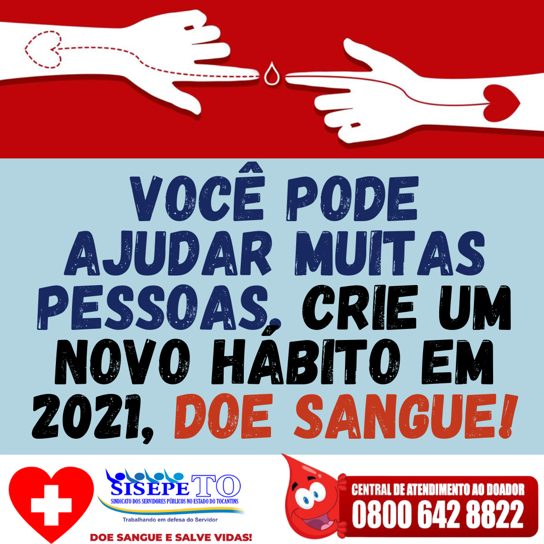 O SISEPE-TO incentiva os seus sindicalizados a adotar um novo hábito em 2021, doar sangue. Um gesto que salva vidas, um grande ato de generosidade e amor. O servidor público civil tem o direito assegurado pela Lei 1.818/2007 de se ausentar do serviço por um dia para doação de sangue.