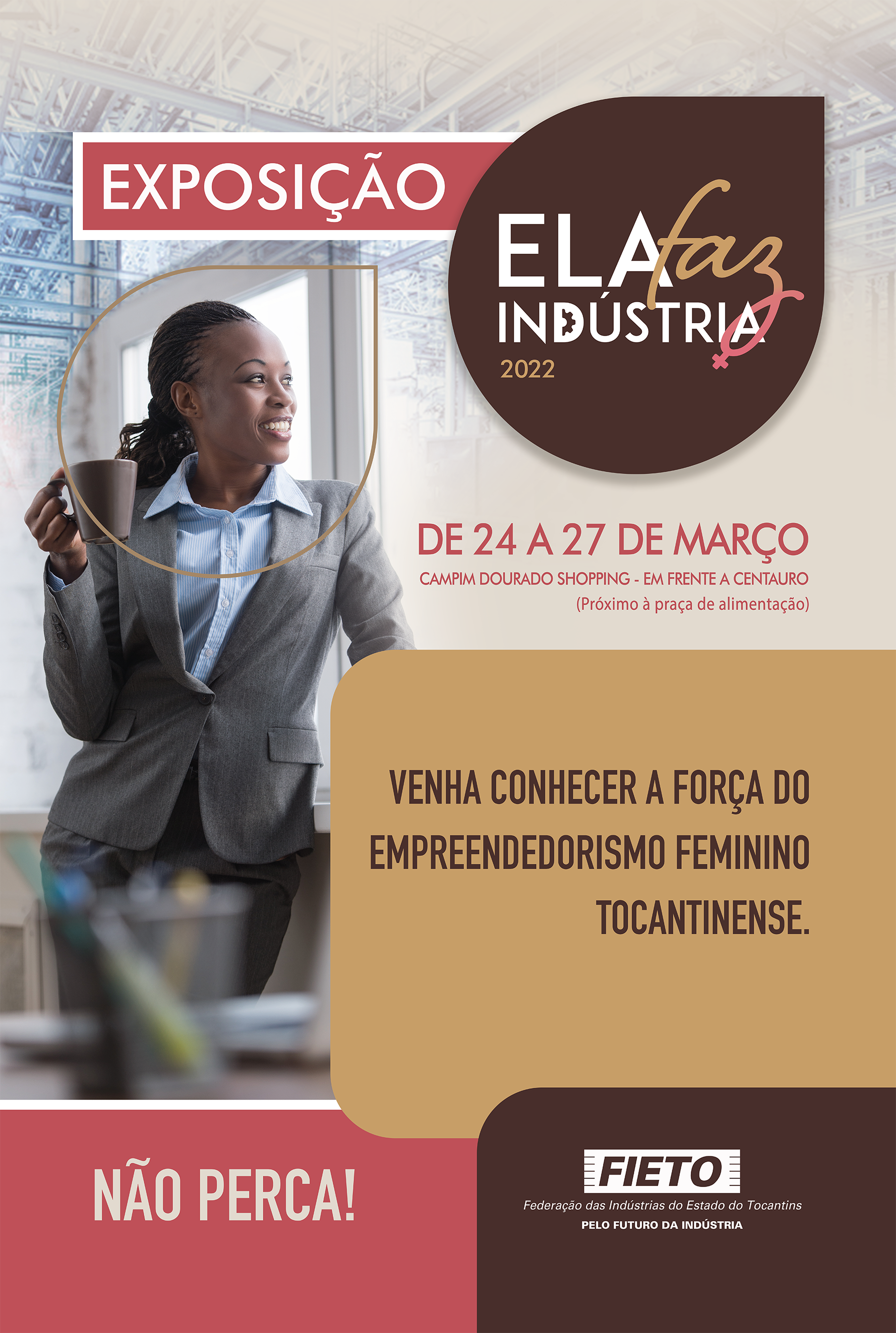 A FIETO realiza nesta quinta-feira (24) a 3ª edição do projeto Ela Faz Indústria, que acontecerá no Shopping Capim Dourado e contará com uma exposição para a divulgação dos produtos desenvolvidos por empresas lideradas por mulheres no Tocantins. O projeto tem como objetivo apoiar lideranças femininas no Programa de Fortalecimento de Empresas.