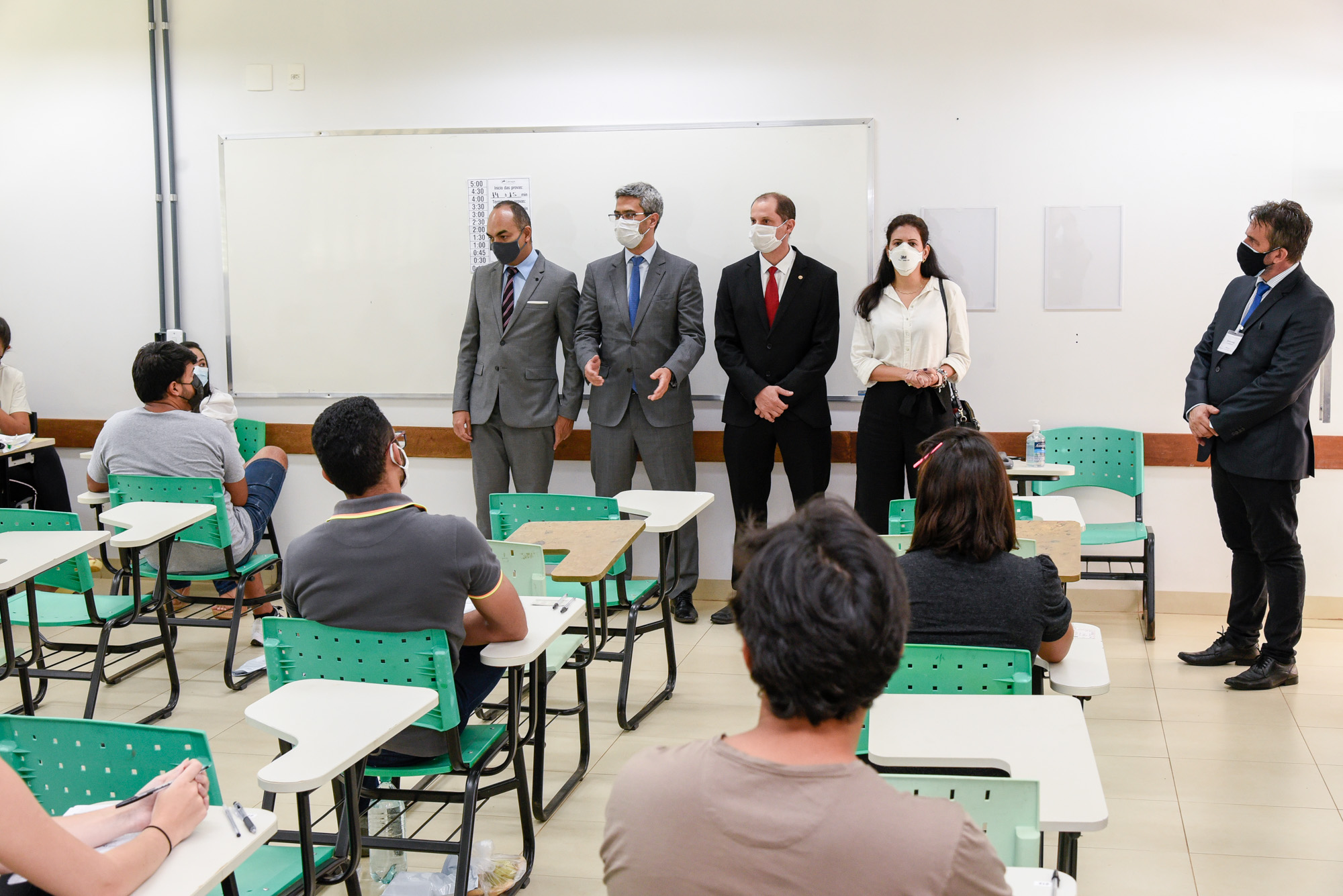 O procurador-geral de Justiça, Luciano Casaroti, acompanhado do membros da Comissão do Certame os promotores de Justiça Celsimar Custódio e Abel Andrade e a representante da Ordem dos Advogados do Brasil – Seccional Tocantins (OAB-TO), Alana Carrech Correia, acompanharam o início das provas em um dos locais e desejaram boa sorte aos candidatos.