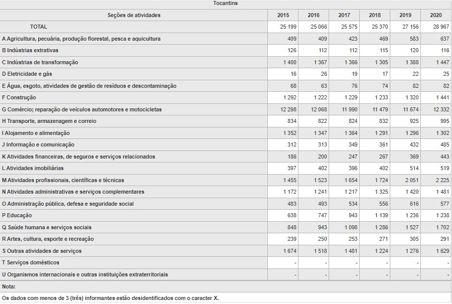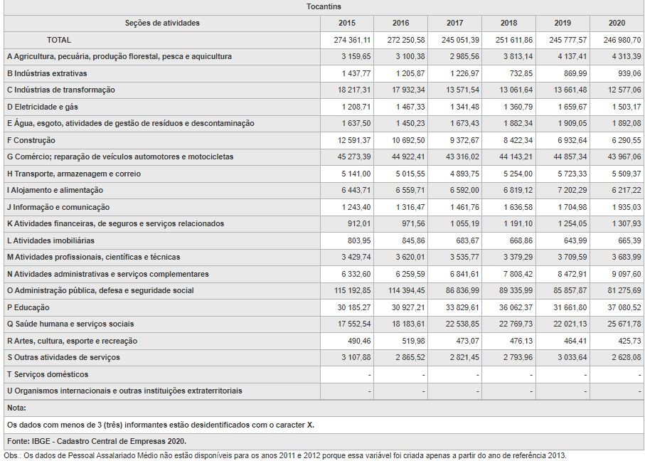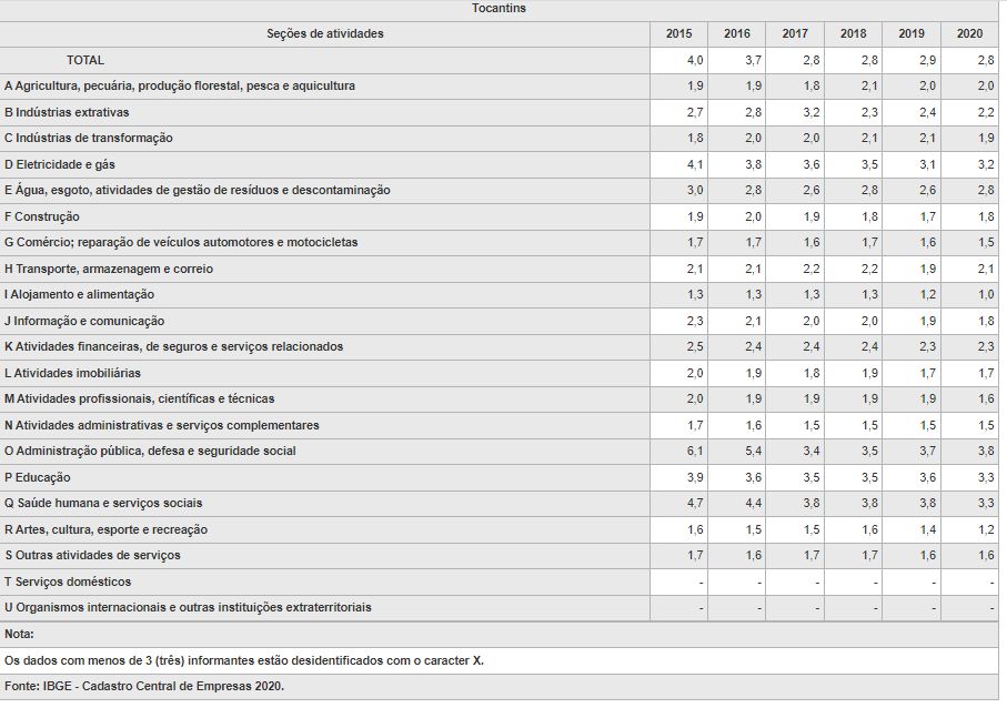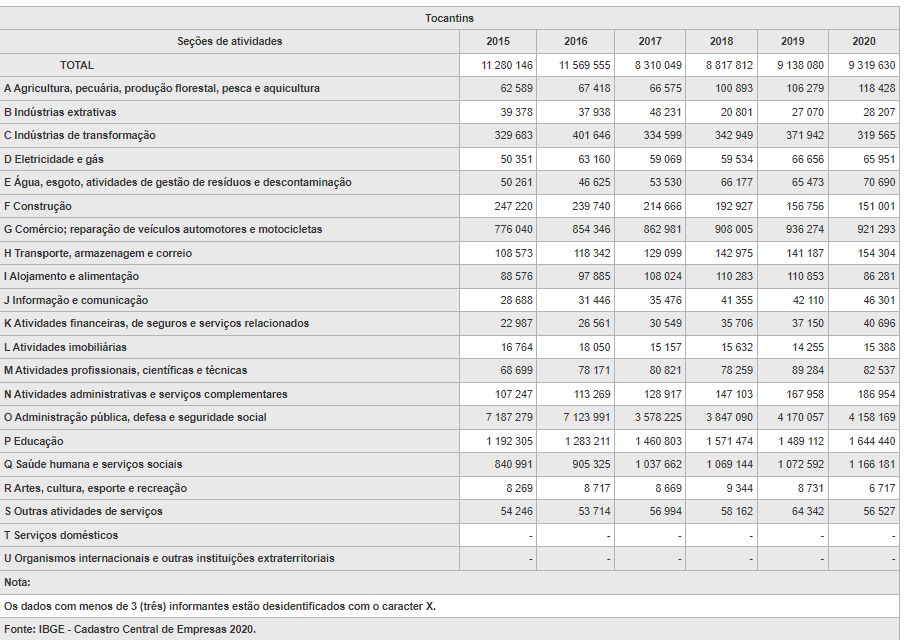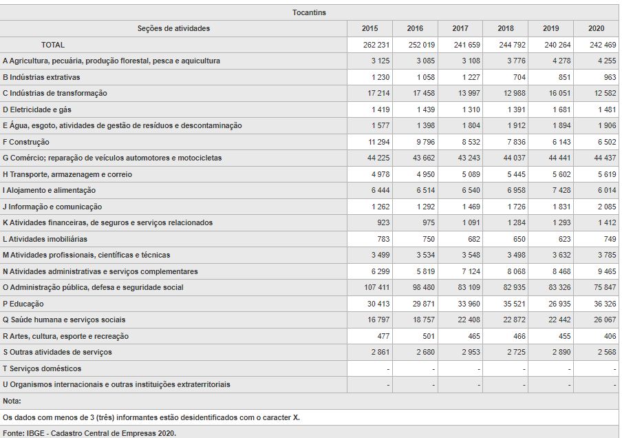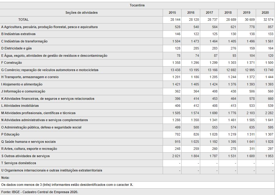 Cadastro Central de Empresas – 2020 no Tocantins