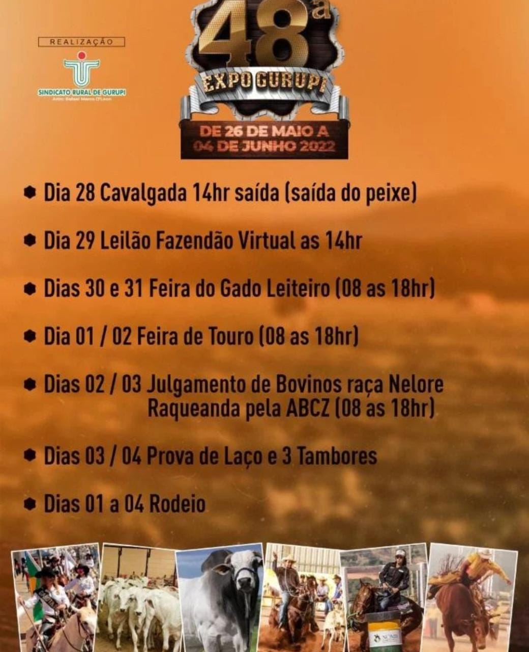 O rodeio, com a marca de Barretos, o melhor do Brasil, contará com premiação de R$ 25mil para o primeiro colocado. A pecuária de Gurupi terá ainda um Leilão de Elite, a Feira de Gado Leiteiro e uma Feira de Touros, com comercialização direta. Para viabilizar a 48ª. ExpoGurupi, o Sindicato Rural contou com o apoio do Sistema FAET/Senar, Governo do Tocantins, por meio do governador Wanderlei Barbosa, os senadores Kátia Abreu e Irajá Abreu, a Prefeitura de Gurupi, por meio da prefeita Josi Nunes e do vice prefeito Glaydson Nato, além do Sebrae. O presidente também destacou o apoio do deputado federal Vicentinho Júnior e do deputado estadual Gutierres Torquato, além das empresas Fazendão e Cooperfrigu e do Banco da Amazônia.