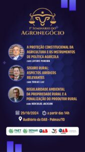 Evento vai tratar de temas jurídicos pertinentes ao setor rural A Federação da Agricultura e Pecuária do Estado do Tocantins…