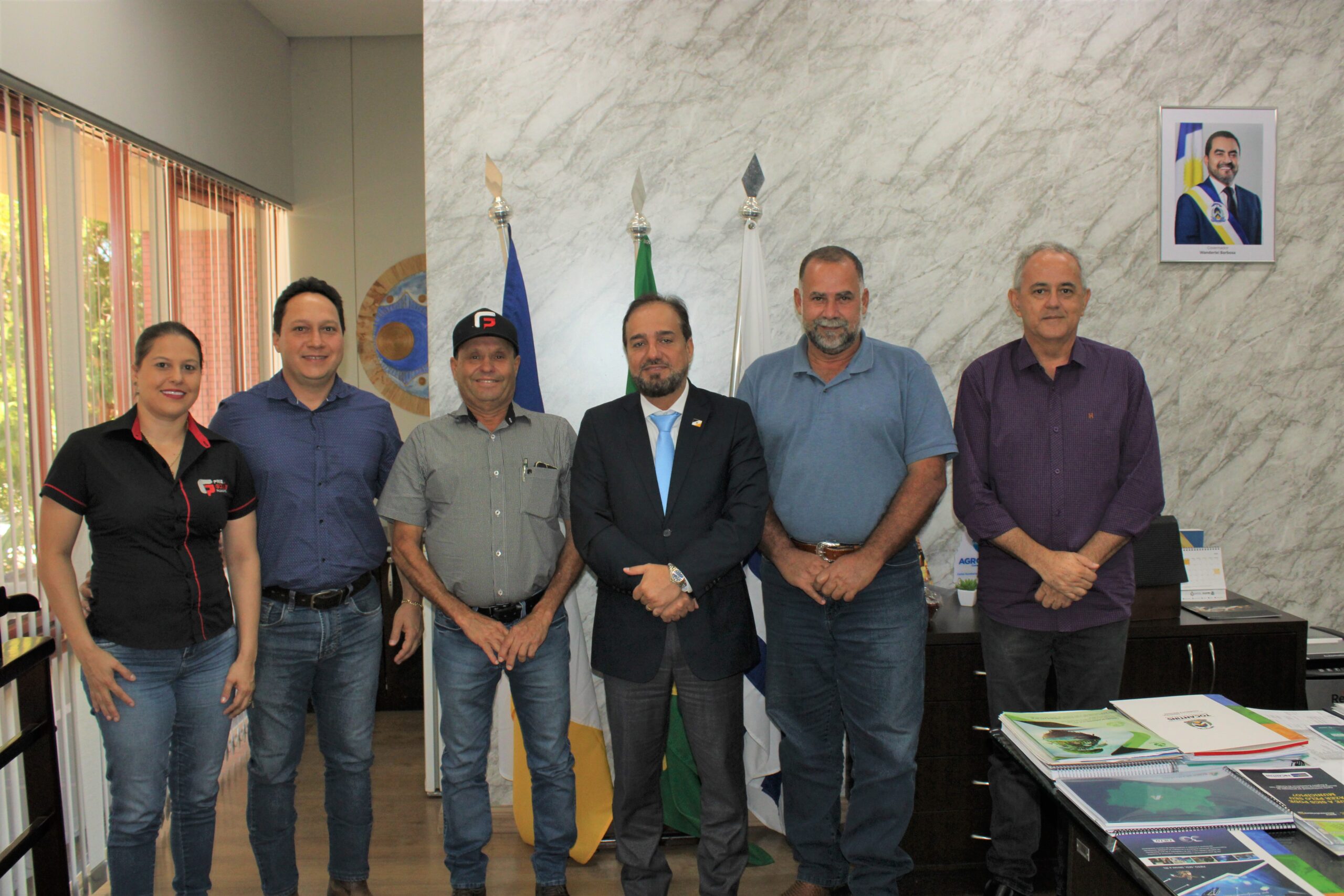 O Governo do Tocantins, por meio da Secretaria de Estado de Indústria, Comércio e Serviços (Sics), reuniu na manhã desta quinta-feira, 25, com representantes de uma unidade frigorífica, com desossa de carnes, o Frigorífico Goiás. O secretário Carlos Humberto Lima, recebeu os empresários Natália Tomazini, André Polizel, Valdir Tomazini e Manoel Alexandre Barros.