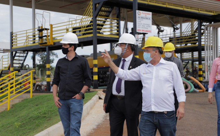 Secretário Tom Lyra e prefeito Celso Morais durante visita a uma distribuidora de combustível em Paraíso – Ascom Sics / Governo do Tocantins