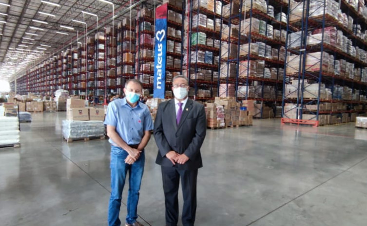 Secretário Tom Lyra acompanhado pelo empresário Ilson Mateus, em visita a um dos centros de distribuição do Grupo Mateus – Ascom Sics / Governo do Tocantins