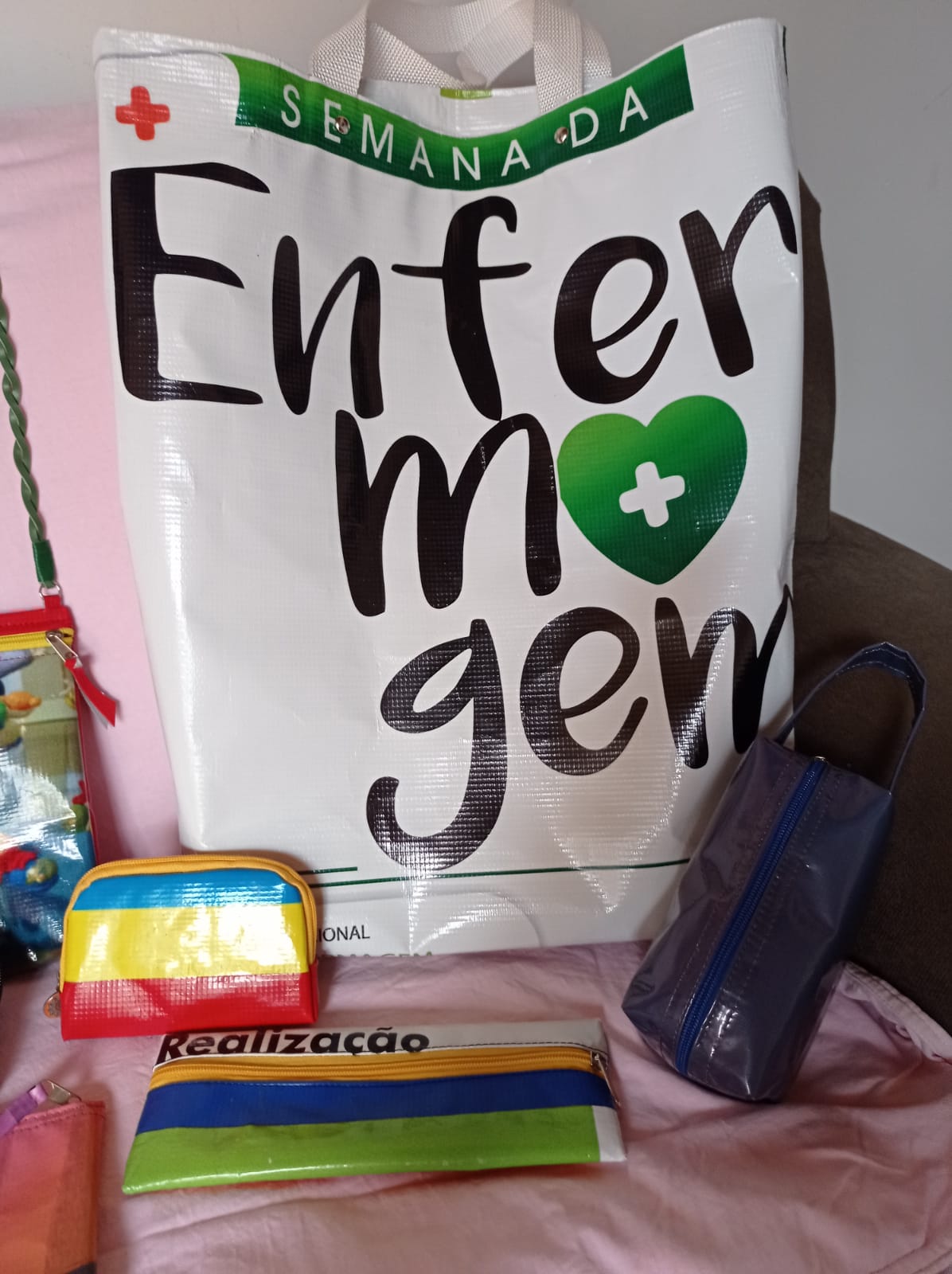 “Nós fazemos não só ecobags, nós estamos com uma grande variedade de produtos feitos com estas lonas, como por exemplo, sacolas de supermercado, bolsas de passeio, carteiras, porta-moedas, porta-caneta, porta-maquiagem, avental, entre outras coisas. Tudo isso está sendo produzido para nós apresentarmos na SICTEG”, frisou Arlene, ressaltando que são peças exclusivas, resistentes e 100% recicladas.