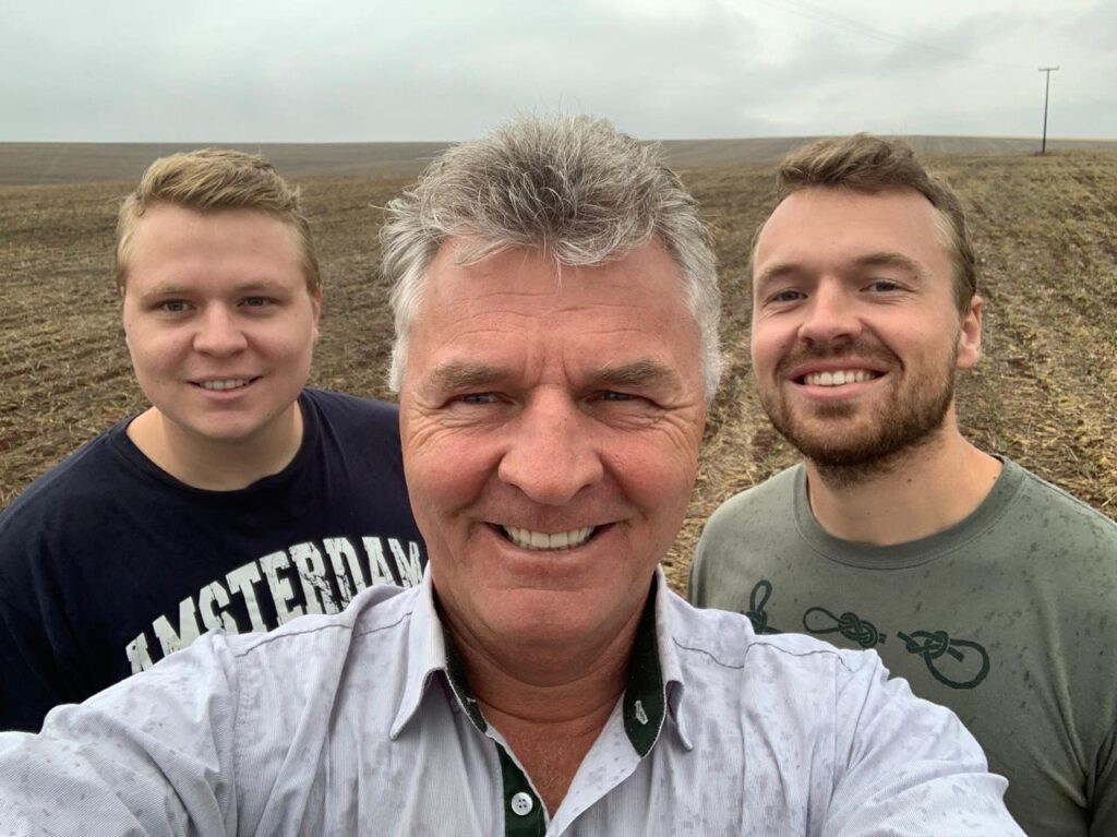 Geraldo Slob, vice-presidente agrícola da Frísia, com seus filhos, Jasper, engenheiro agrônomo, e Leon, administrador. Foto: Arquivo pessoal/divulgação