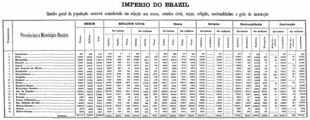 Os senhores, pelos números do Censo, declararam que todos os seus escravizados eram católicos. Isso não correspondia à realidade, já que muitos se mantiveram fiéis às religiões africanas. O mesmo raciocínio vale para os escravizados libertos e também para os indígenas.