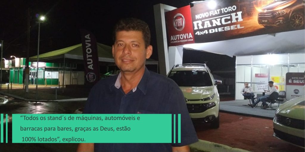 “Nos anos anteriores era terceirizado a questão das bebidas e os valores de aluguel dos espaços para bares e restaurantes estavam fora do mercado. Agora nós reduzimos o valor dos aluguéis das barracas de comidas e bebidas em 50% para estimular os nossos comerciantes. Com isso, todos os stand´s de máquinas, automóveis e barracas para bares, graças as Deus, estão 100% lotados”, explicou.